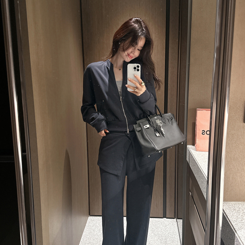 물론 모델처럼 같은 소재의 하의 아이템과 매치하면