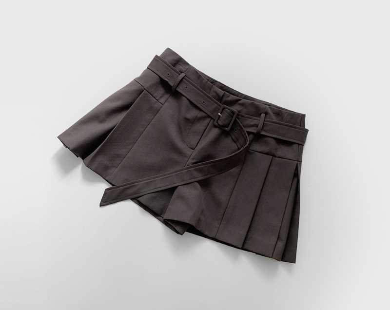 테이크 벨트 핀턱 팬츠