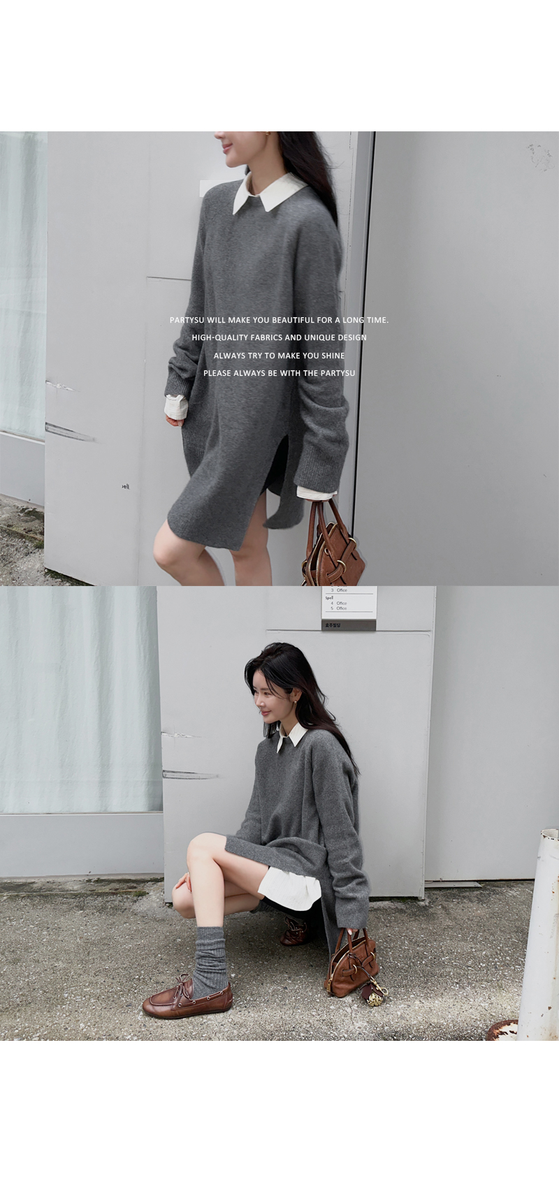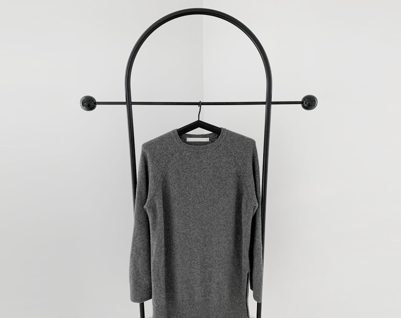 라운드 넥으로 목선을 부드럽게 잡아주고