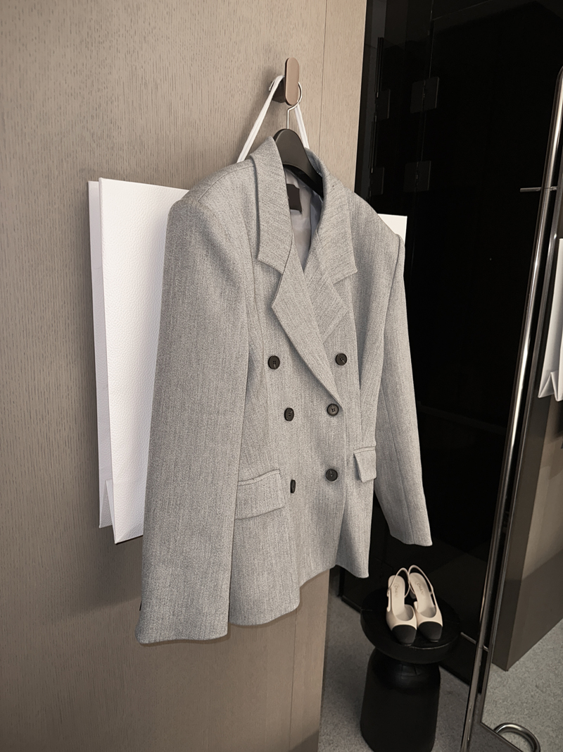 단정한 라인이 매력적이며 어깨 패드로 각지고