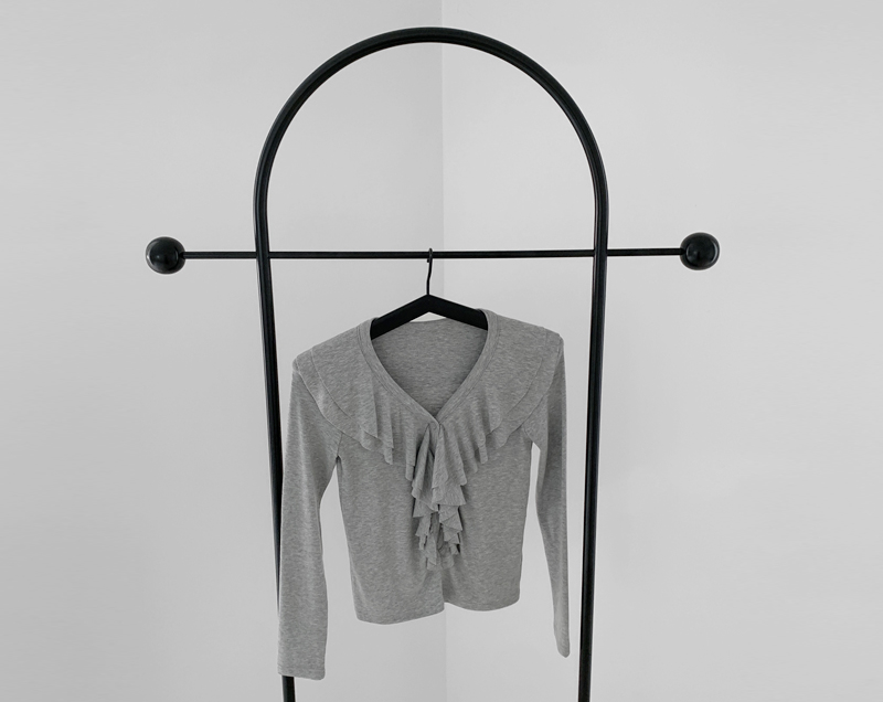 정면 넓은 프릴 넥으로 우아하면서 로맨틱한