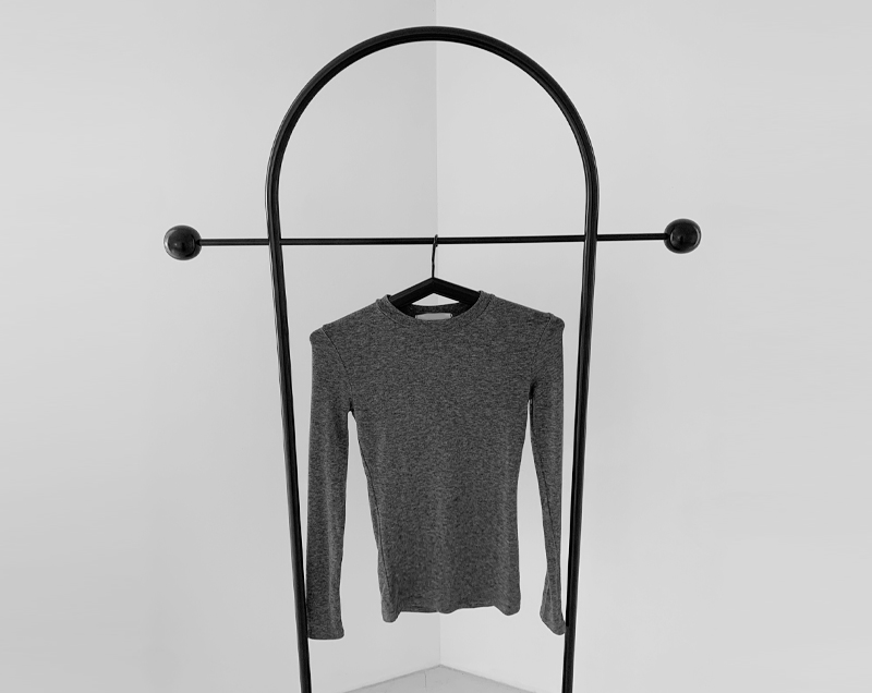라운드 넥으로 목선을 부드럽게 잡아주며