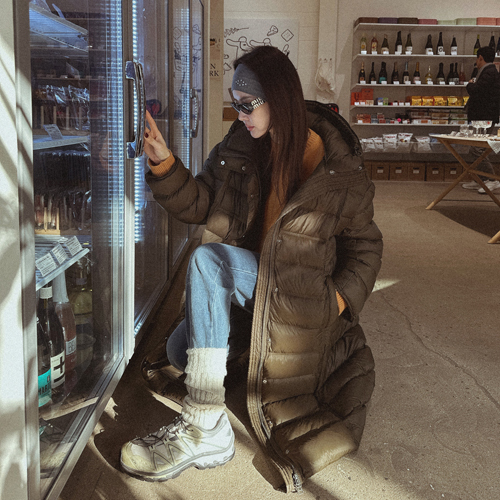폰트 덕다운 롱 패딩 (카키)