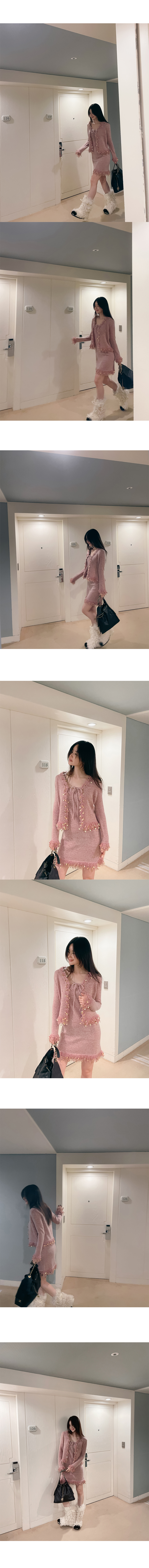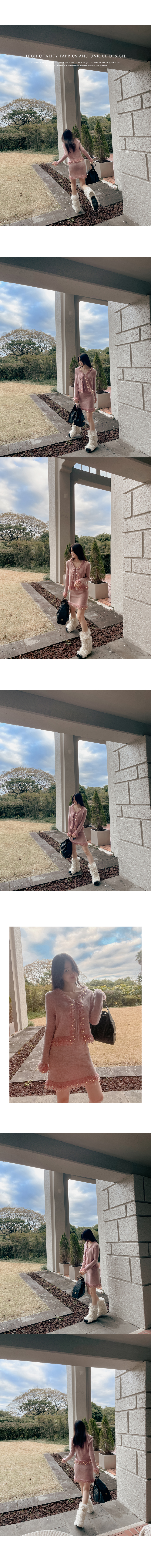 넥 라인부터 밑단, 소매 라인에 풍성한 디테일과