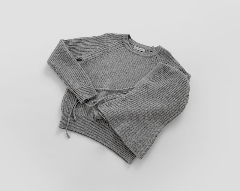라운드 넥으로 목선을 편안하게 잡아주며 클래식한