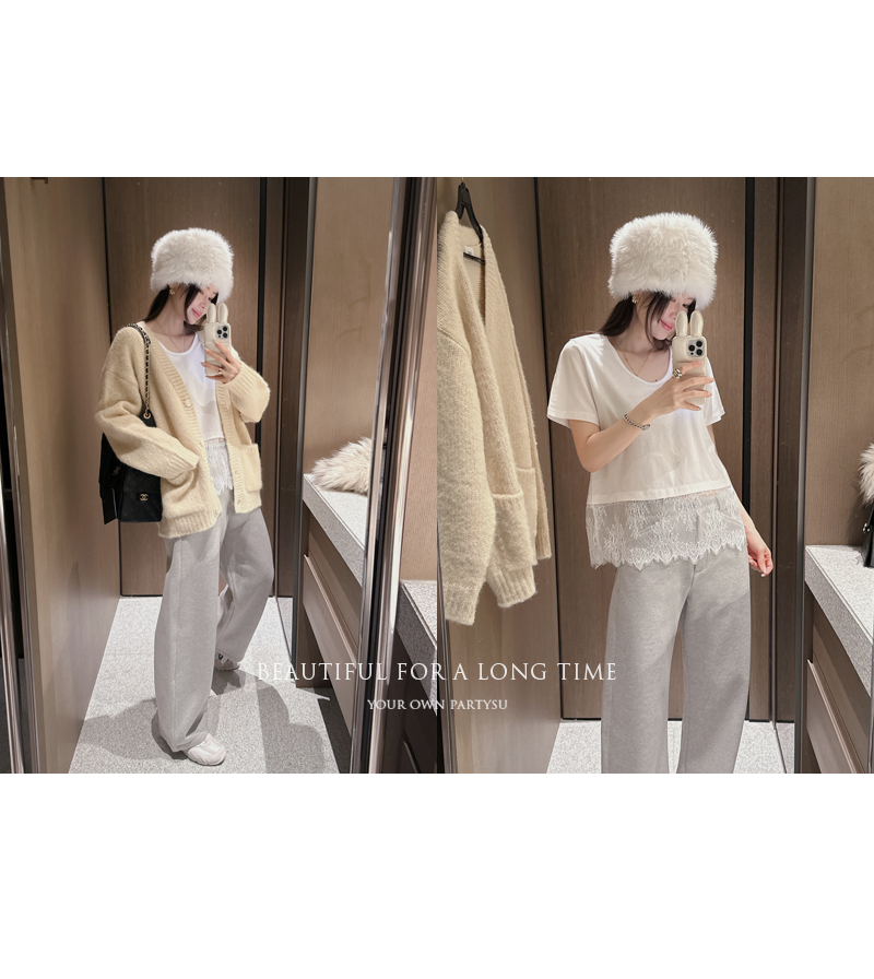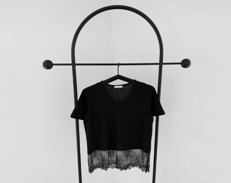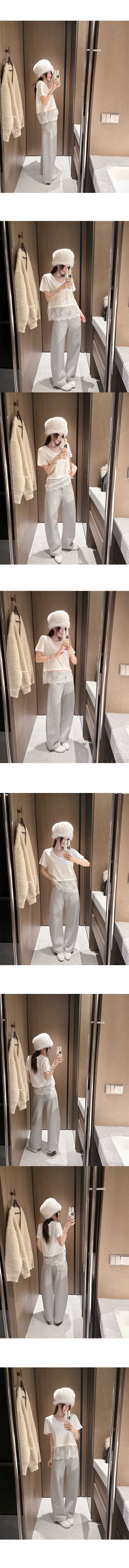 살짝 크롭한 기장과 밑단 긴 레이스