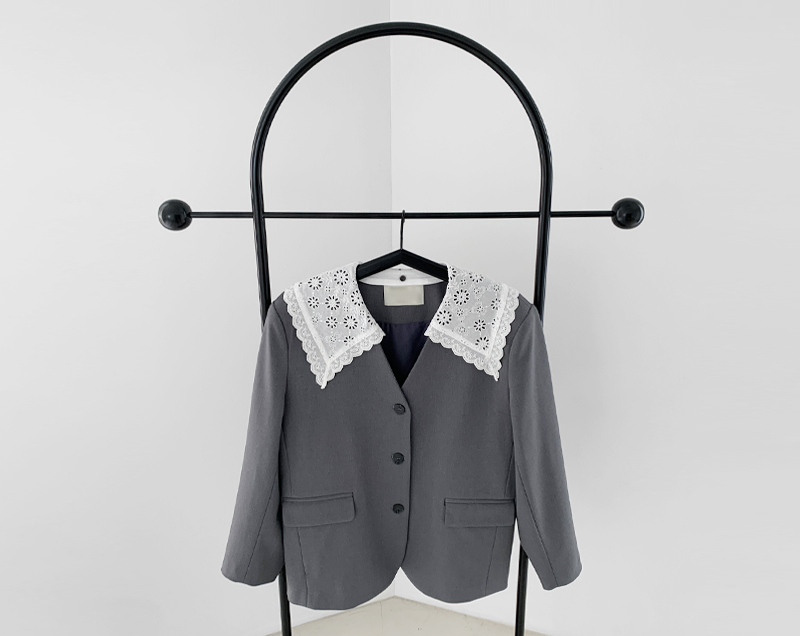 탈부착이 가능한 레이스 카라로 두 가지 느낌의 재킷으로