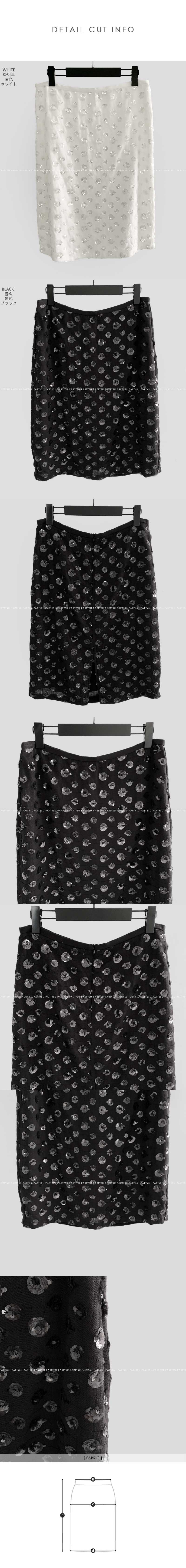 파이 플라워 스팽글 미디 스커트