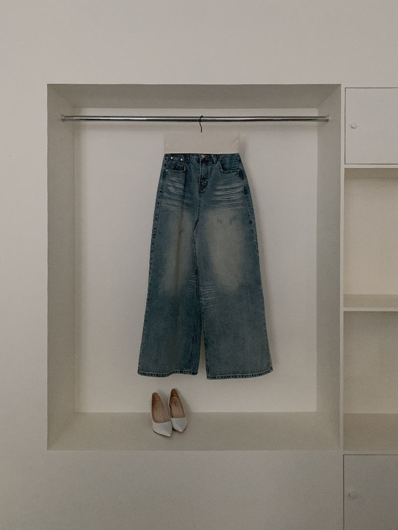 리버 캣 워싱 와이드 데님
