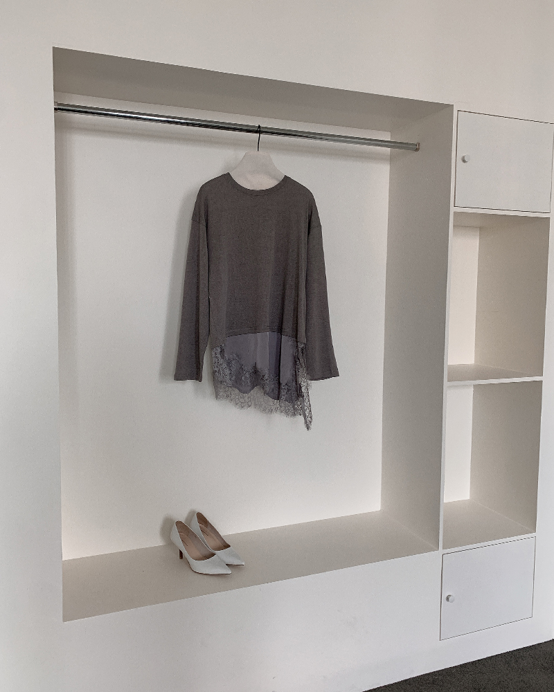 밑단에는 레이스와 쉬폰 디테일이 더해져
