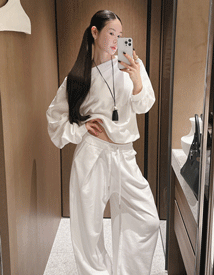 핀턱 디테일이 더해져 단순한 트레이닝 팬츠 느낌이