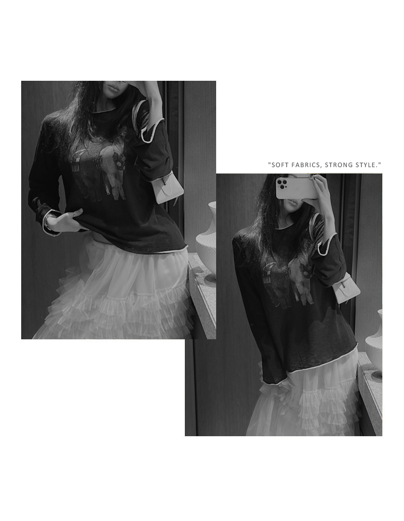 빈티지한 무드의 프린팅이 매력적인 티셔츠입니다.